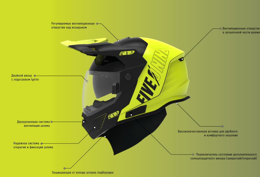 • Двойной визор с подогревом и защитой от запотевания