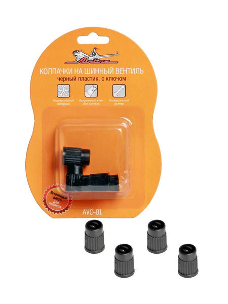 Колпачки на шинный вентиль,черные, пластик, 4 шт. AVC-01