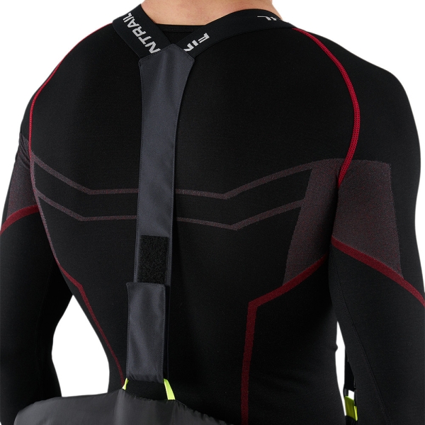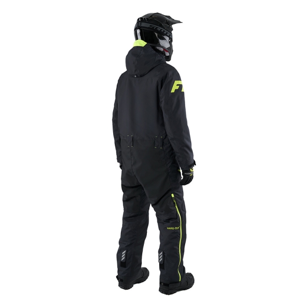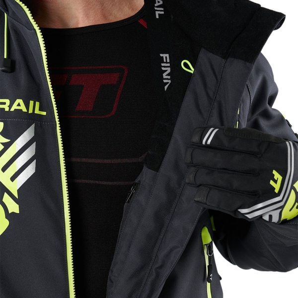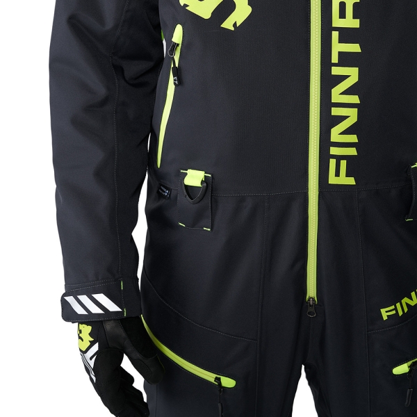 и подкладка с вставками из микрофлиса для дополнительного комфорта. Структура ткани позволяет сохранять тепло и комфорт в течение 24 часов при температуре до -30°C. Артикулированный крой учитывает анатомию человеческого тела и обеспечивает полную свободу движений даже во время использования защитного панциря. Функциональный дизайн модели объединяет в себе продуманные детали и оригинальную графитовую расцветку. Комбинезон имеет двойную подкладку из быстро сохнущей сетки, которая эффективно отводит влагу от тела. Все швы комбинезона полностью проклеены, обеспечивая полную влагонепроницаемость. Мягкий микрофлис на вороте предотвращает натирание подбородка и создаёт дополнительное тепло. Воротник сконструирован таким образом, чтобы обеспечить комфортное ношение шлема во время катания. Регулируемая кулиса в районе пояса позволяет настроить наиболее удобную посадку. Регулируемый капюшон позволяет настроить оптимальный объём. Под влагозащищенными молниями в области подмышек, находится сетчатое покрытие. В зависимости от погодных условий молния позволяет регулировать тепловой режим, блокируя или пропуская воздух. Внутренние лайкровые манжеты и внешние из прорезиненного материала регулируют объём и препятствуют попаданию снега и грязи внутрь. Центральная двухзамковая тракторная молния с планками обеспечивает прочное соединение и защиту от воды и ветра. Комбинезон имеет пять внешних карманов с влагозащитными молниями: два боковых на тёплой подкладке для согревания рук, два набедренных и один нарукавный. Также модель оснащена двумя внутренними карманами: первый на молнии и имеет дополнительное отверстие для петлей наушников, а второй выполнен из сетки для более бережного хранения вещей.На комбинезоне расположены дополнительные D-образные полукольца, которые надёжно фиксируют чеку безопасности квадроцикла. На груди имеется петля для крепления рации. В конструкцию комбинезона интегрированы настраиваемые подтяжки, которые создают идеальное прилегание и комфорт во время активных движений. Специальный материал Cordura обеспечивает дополнительную износостойкость в районе колен, седалища и нижней части брюк. Благодаря защитным гетрам снег не попадает внутрь ботинок и брюк. Вставка из мягкой пенки в области коленных суставов обеспечивает отличную теплоизоляцию, когда необходимо вставать на колени, и амортизацию, снижая риск повреждений. Центральная тракторная молния с планкой надёжно защищает от снега и холода. Спереди и сзади модель оснащена светоотражающими элементами 3M, которые обеспечивают безопасность при нахождении в темноте или при плохой видимости.