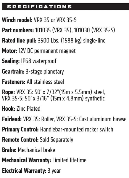 - VRX 35-S: усилие 3,500 lb.(1588кг)