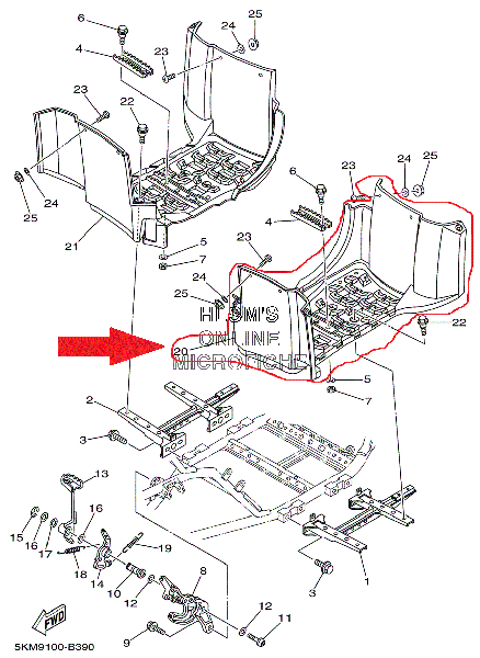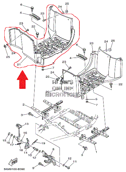 Подножка правая Yamaha grizzly 660 5KM-27463-01-00