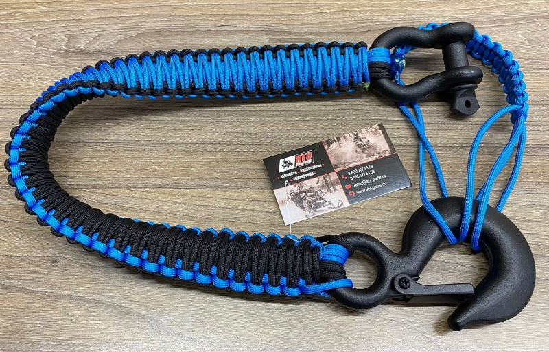 Трос-удлинитель из паракорда для лебедки синий черный (черный крюк) PRD-B-BLUE B