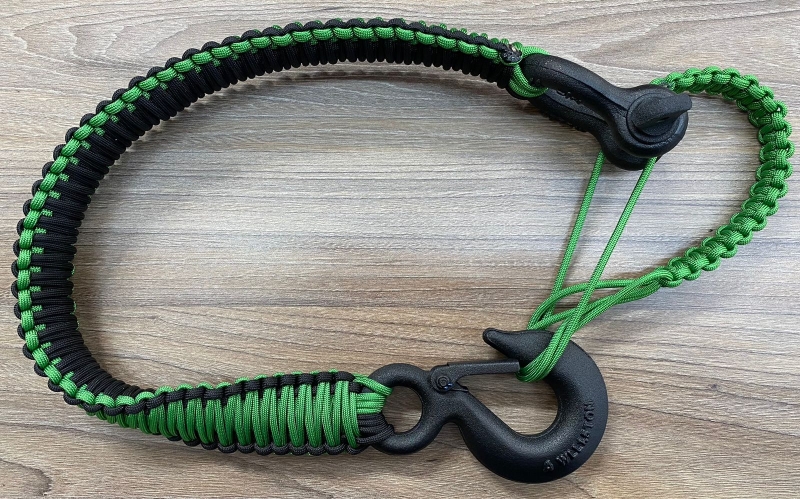 Трос-удлинитель из паракорда для лебедки зеленый черный (черный крюк) PRD-B-GR B