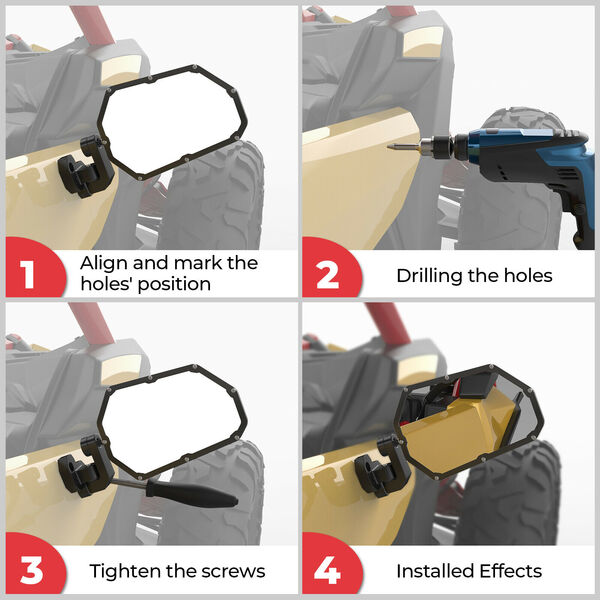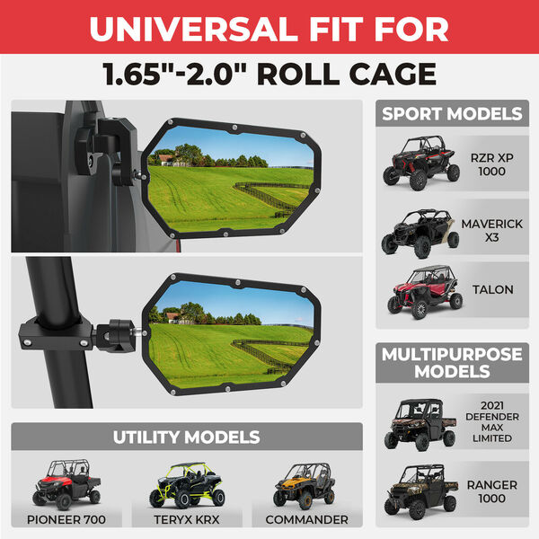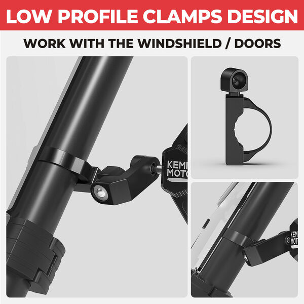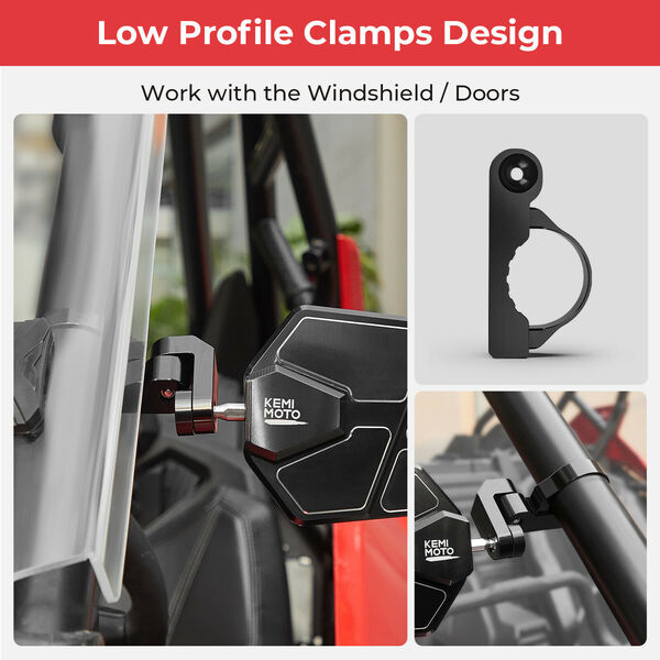Зеркала универсальные Kemimoto Premium для 1.6-2" каркаса с доп. креплением для установки на двери и штатное место CanAm Defender 715002459 B0106-05901BK